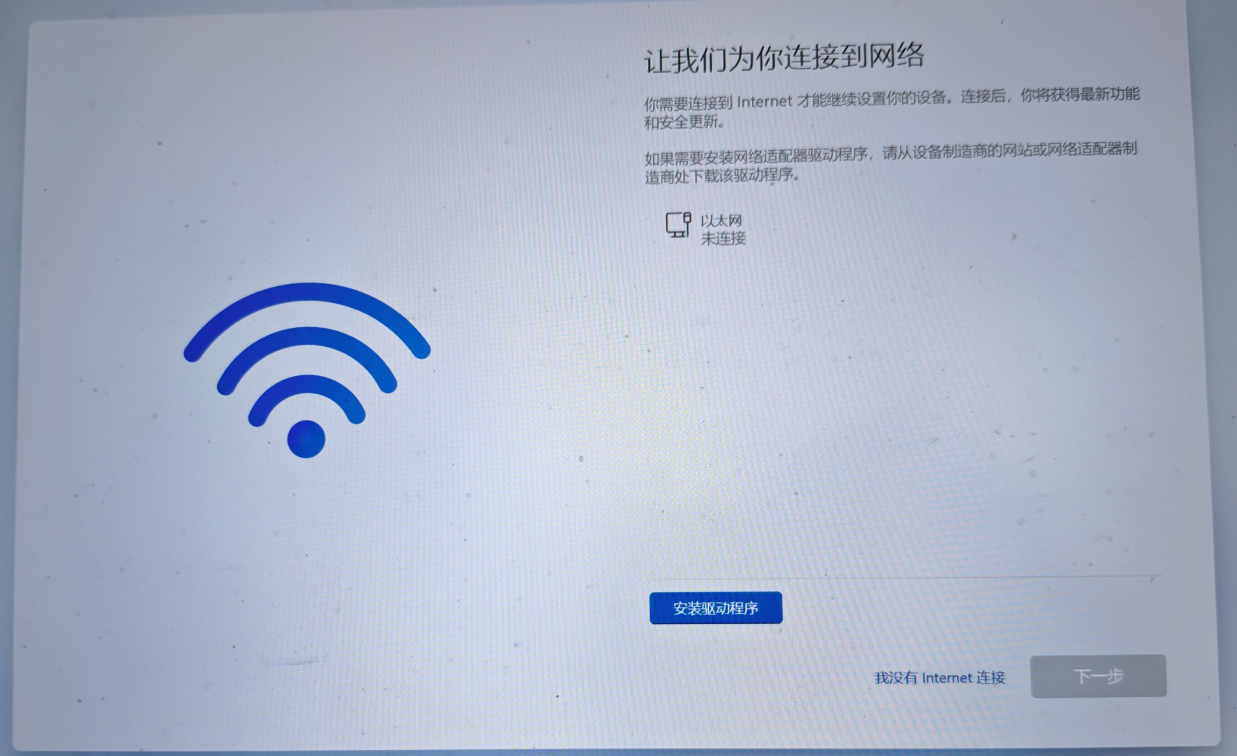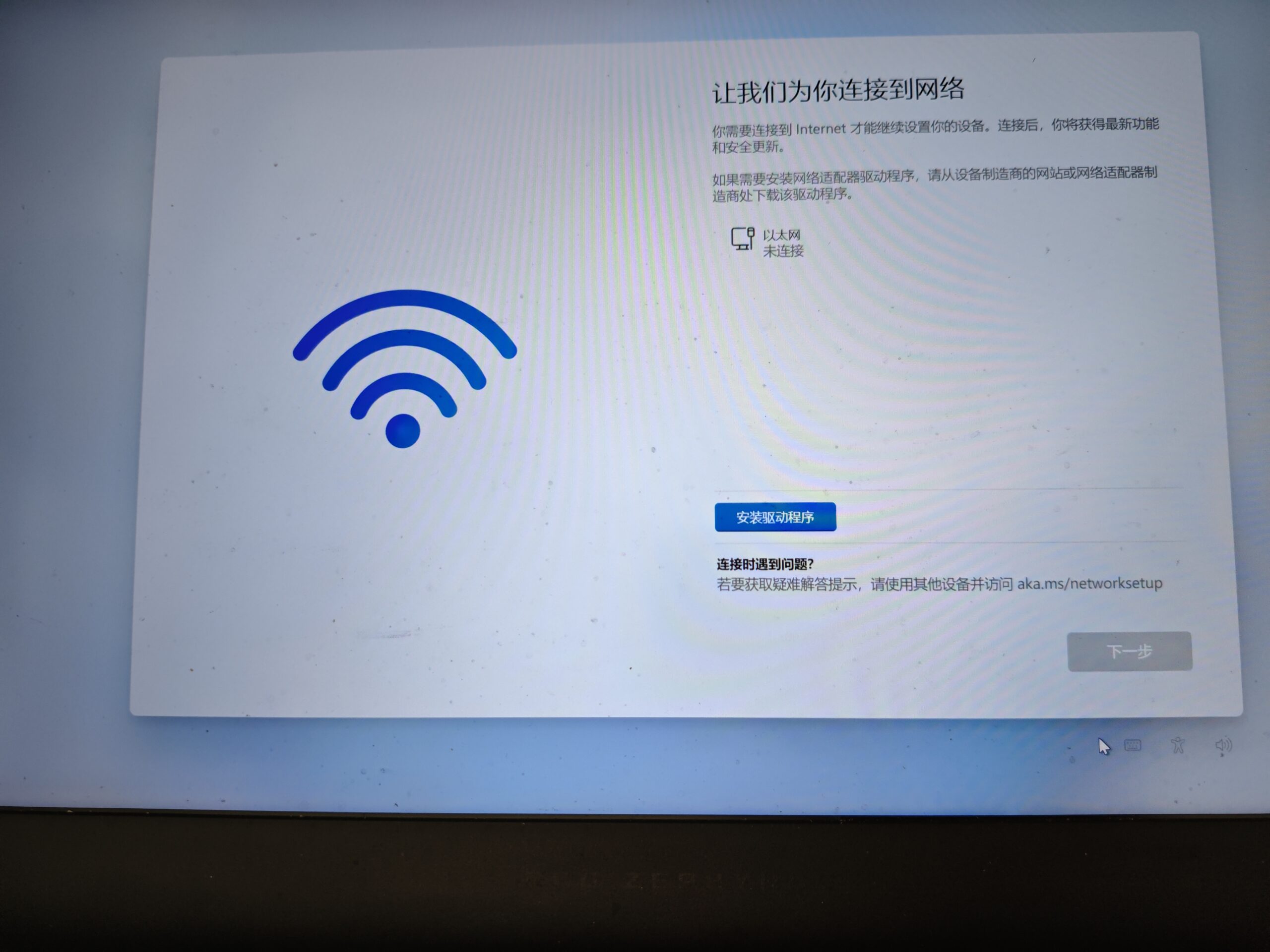 用旧版安装器安装没有出现问题,安装后就能跳过网络连接了。