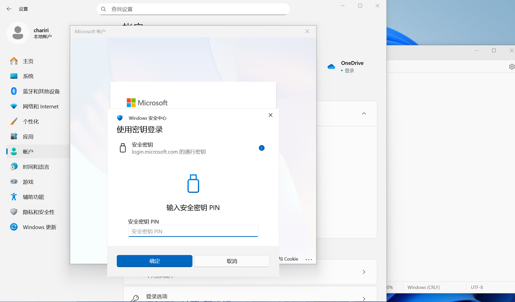 虽然先前花了很多时间绕过网络检查和在线账户登录,但连上网第一件事就是登录了 Microsoft 账户和 OneDrive,等了几分钟系统就自动联网激活了。接下来点几次设置里面的检查更新,就开始自动安装更新和驱动了(即使是用的最新的 UUP 镜像,还是有一堆更新没有被打进去)。比较爽的是在设置界面登录 Microsoft 也能用 passkey: