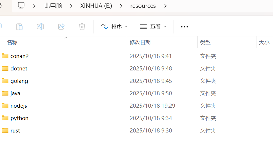 在装 Rustup/Rust、Golang、pip/uv、Gradle、conan、NuGet、Maven 等的时候,笔者注意把这些程序的缓存、包库等目录全部扔到了 E 盘,并调整对应的环境变量。