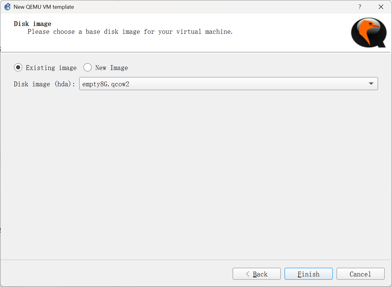 这里不能点“Browse”选取本地镜像,而应该直接输入类似 /opt/gns3/images/QEMU/vyos-20251028-rolling.qcow2 的镜像路径(对于 GNS3 VM,必须在 /opt/gns3/images/QEMU,而文件名是第一步自己取的)。“Disk Interface”选“virtio”。